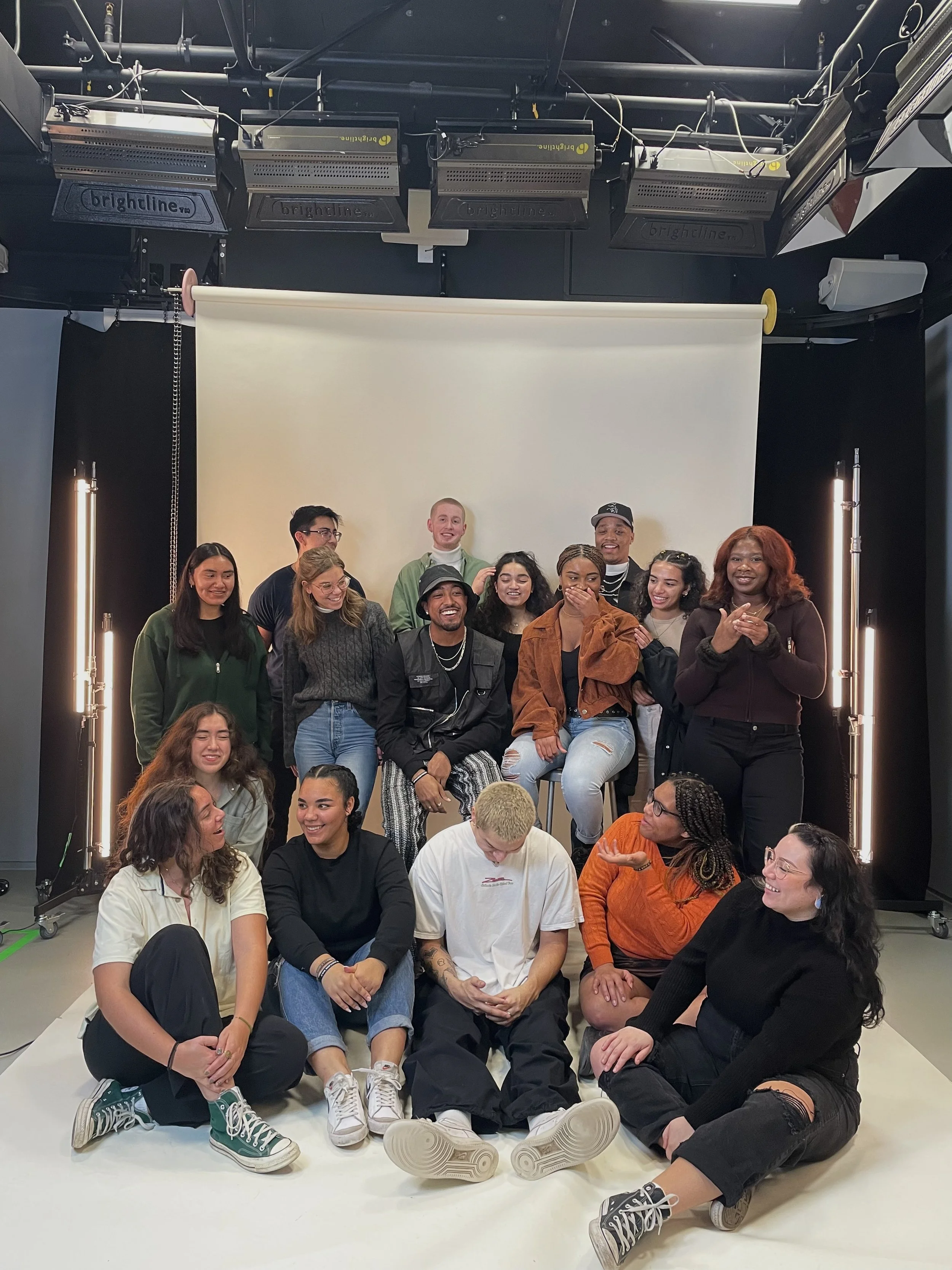 NABJ members posing in the Allen Hall photo studio for their first meeting of winter term in January 2023.